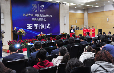 参加仪式的还有吉大校领导赵继、张晓林、刘晓民、杜莉,党委常委、组织部长杨玉新以及来自电信集团和吉大相关职能部门负责人。仪式由副校长张向东主持。(李懿书)